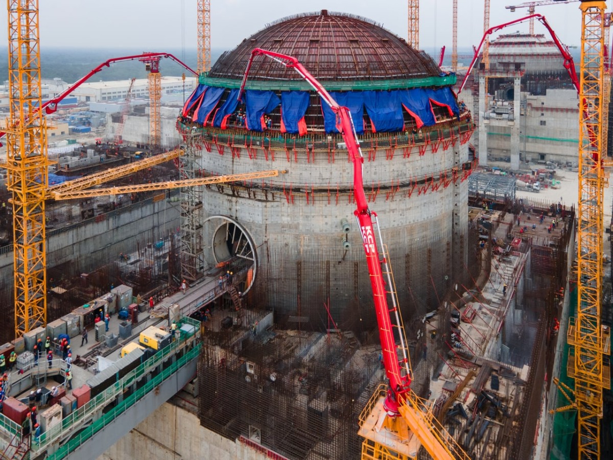 Concreting has begun on the inner containment dome of the reactor building of unit 2 at the Rooppur NPP under construction in Bangladesh, Rosatom’s Engineering Division has announced. The work is being carried out by specialists Trest RosSEM, part of the engineering division of Rosatom. It is planned to lay more than 3,200 cubic metres of concrete on a reinforced concrete structure with a height of 17.6 metres and a base diameter of 42.8 metres using four concrete distribution booms.