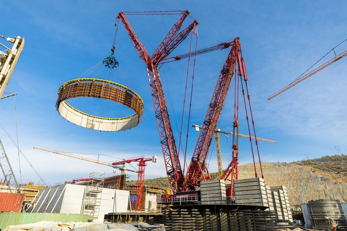 Image: The fourth tier of the internal containment being lifted into place by a Liebherr LTM 1300 truck crane (courtesy of Akkuyu Nuclear)